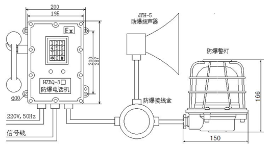 4.防爆標(biāo)志:ExdibⅡBT6 Gb(防爆電話機);ExdⅡBT6 Gb(防爆揚聲器)
